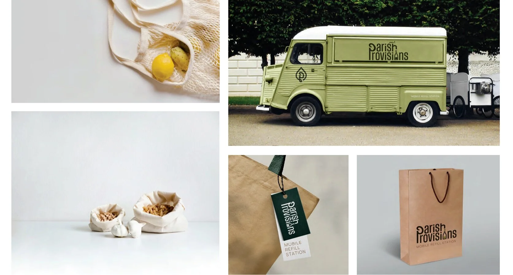 PLAYFUL — Show off your brand’s personality with a playful logo incorporating an illustration of a reusable canister being refilled in line with the brand's main directive. The logo features lowercase font for an approachable feel, and the single curvy “P” for both words represents the brand’s efficiency and creativity. The green and blue color palette is a not-so-subtle hint to an eco-lifestyle.